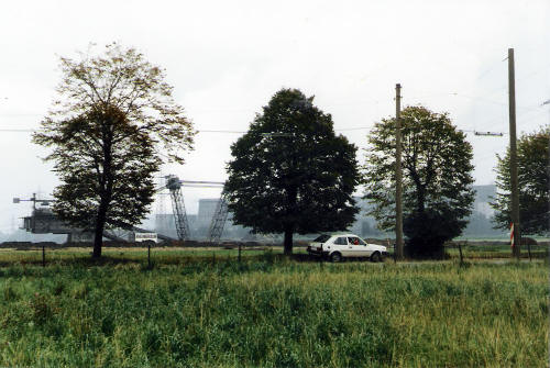 Fortuna nach Abbruch. Vor dem abgebrochenen Haus Bethlehemer Straße, Blick auf´s Kraftwerk Fortuna mit Schaufelradbagger dazwischen. Auto direkt vor Haus 152. |