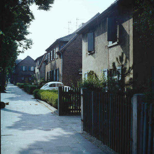 Straßenseite mit Eingang und Straßenschilder Quadrath und Oberaußem |