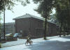 Geschäft direkt am Bahnübergang Richtung Bethlehemer Wald, Giebelseite mit Weg entlang der rechten Bahnseite |