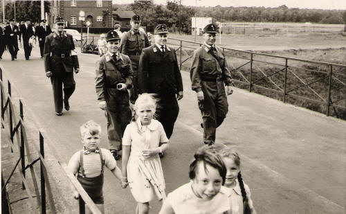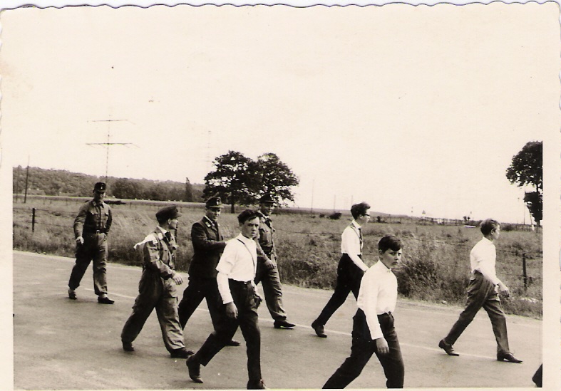 Rotes Kreuz, Umzug mit Böhnke, Siegfried Röcher,Werner Dörr,im Hintegrund 2 Eichen auf der Weide zum Kloster |
